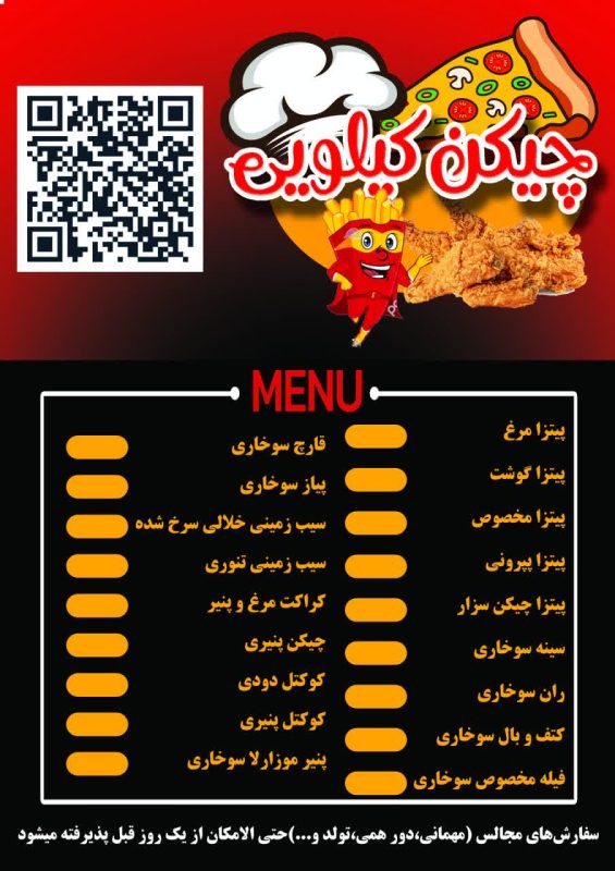 در چیکن کیلویی، هدف ما فراتر از ارائه یک وعده غذایی است؛ ما به دنبال خلق تجربهای لذتبخش برای مشتریان خود هستیم. منوی متنوع ما شامل مرغ سوخاری، برگرهای لذیذ، ساندویچهای مخصوص و انواع پیشغذا و نوشیدنی است که همگی با دقت و رعایت بالاترین استانداردهای بهداشتی تهیه میشوند.